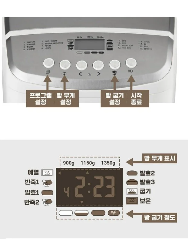 자동보온: 빵이 완성되면 1시간 동안 온기를 유지해 줍니다.